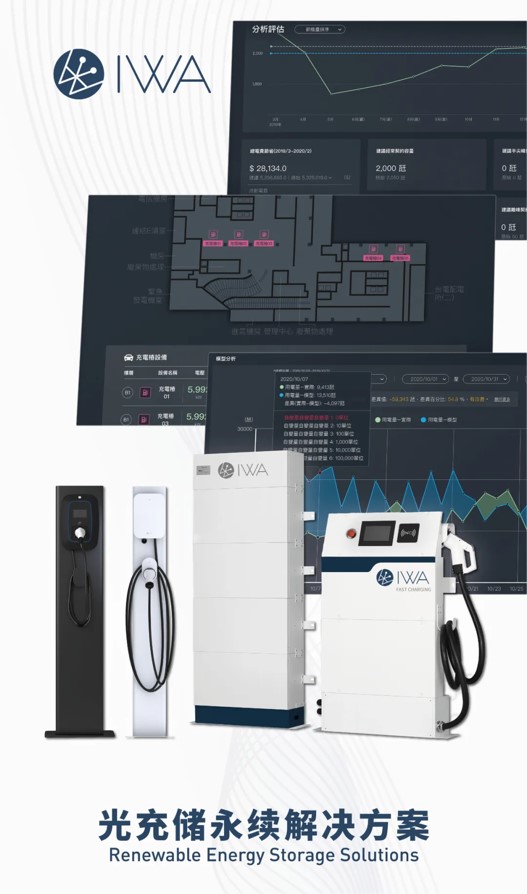 世界各国朝着2050年净零碳排目标积极迈进,并力求在2030年实现交通载具全面电动化,群光电能IWA提供多款光充储设备,包括家用、商用和储能充电桩,以支持载具电动化转型。能源碳排自动化管理系统主要有碳排放和能源消耗可视化、场域节能与智能控制、设施和财产的可持续运行。